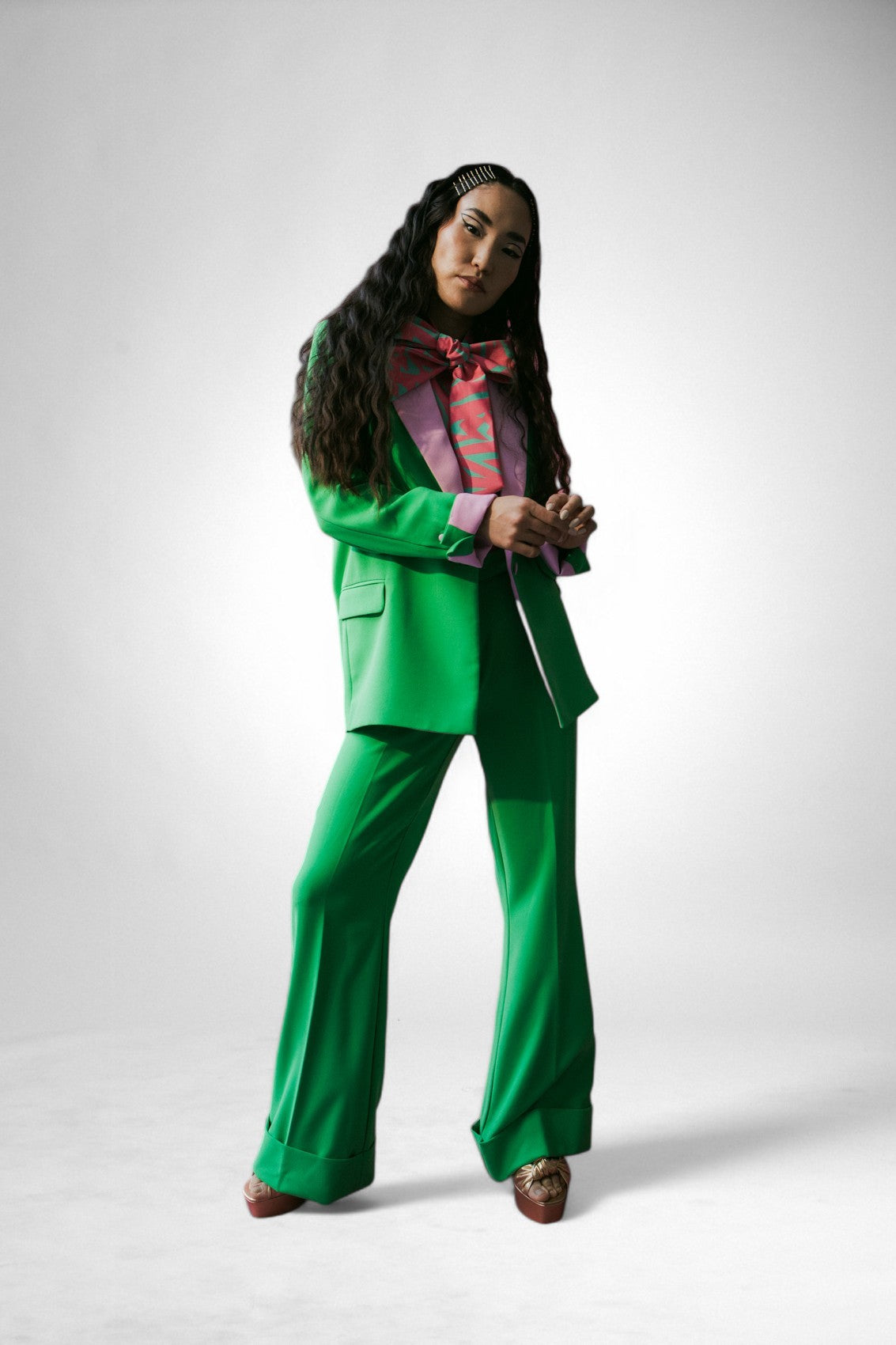Met deze blazer geef je elke outfit een instant boost. De oversized revers in contrasterend kleur is niet alleen een statement op zich, maar zorgt er ook voor dat schouders optisch versmallen.