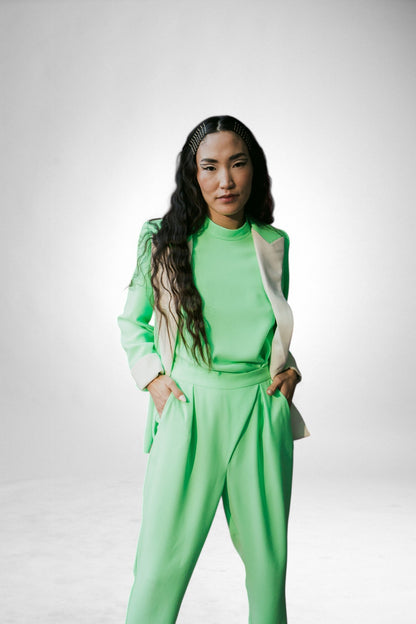 Met de Alex blazer geef je elke outfit een instant boost. De oversized revers in contrasterend kleur is niet alleen een statement op zich, maar zorgt er ook voor dat schouders optisch versmallen.