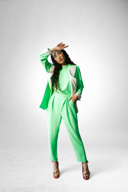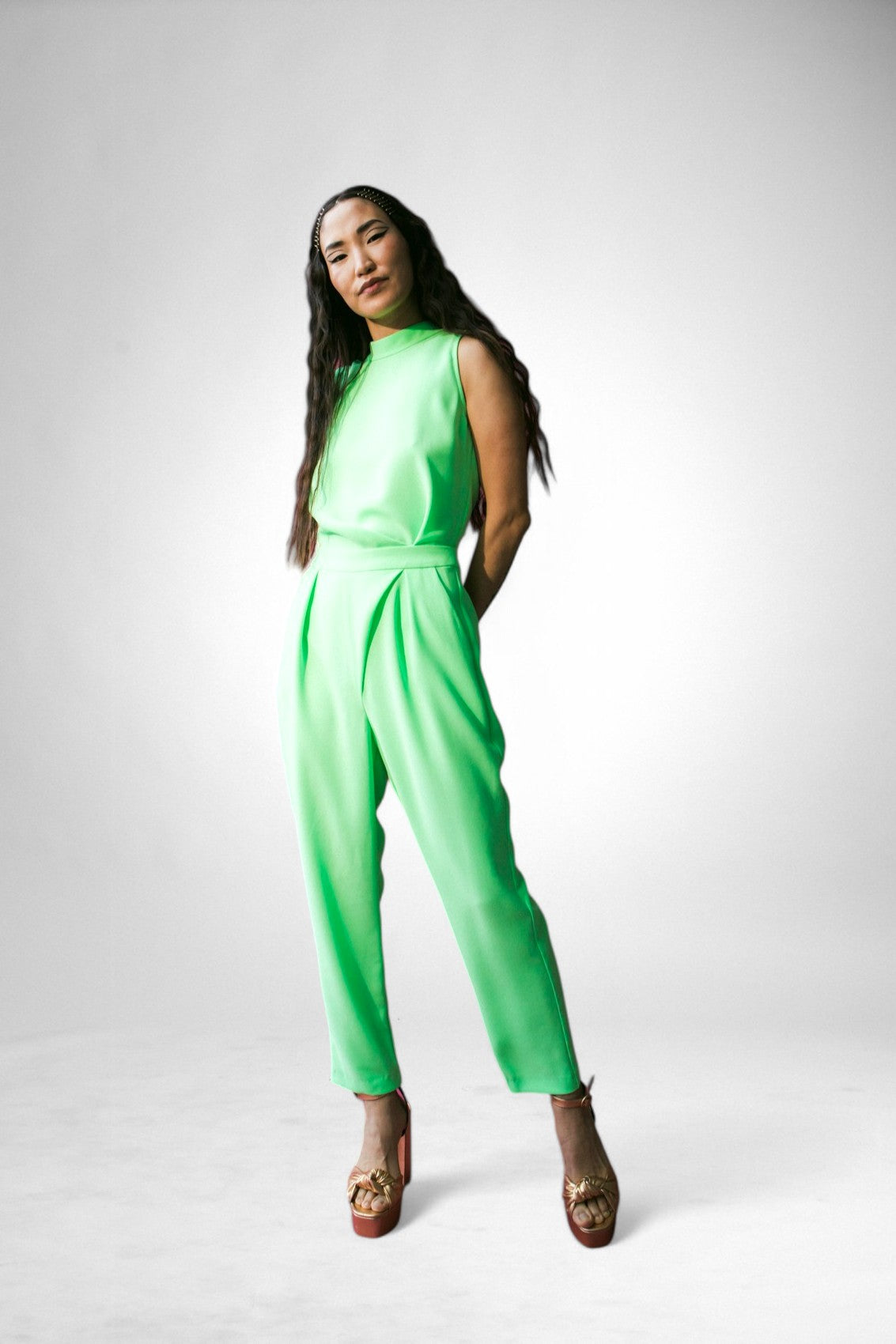 Deze jumpsuit gebruikt de flaterende elementen van een paperbag broek om je taille optisch te versmallen en tegelijk nog steeds bijzonder comfortabel te zijn. Draag hem casual, met een souspull of hemdje eronder, of combineer hem met een matching blazer voor een stoere geklede look.