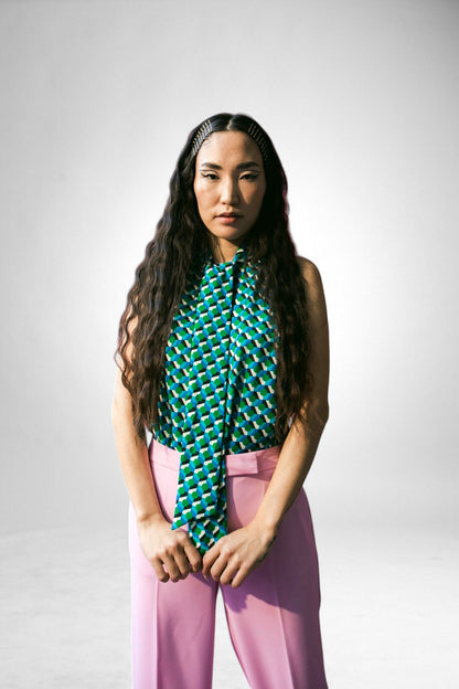 Onze top is het hoogtepunt van vrouwelijkheid met zijn fleurige print en lintjes die je als strik of als das kan knopen. Maak er je eigen look mee! Het model is uiterst geschikt om zowel in als uit je broek te dragen. Hij combineert geweldig met de uni kostuums, of ga voor een iets gedurfdere look en draag hem met een broek in dezelfde print!